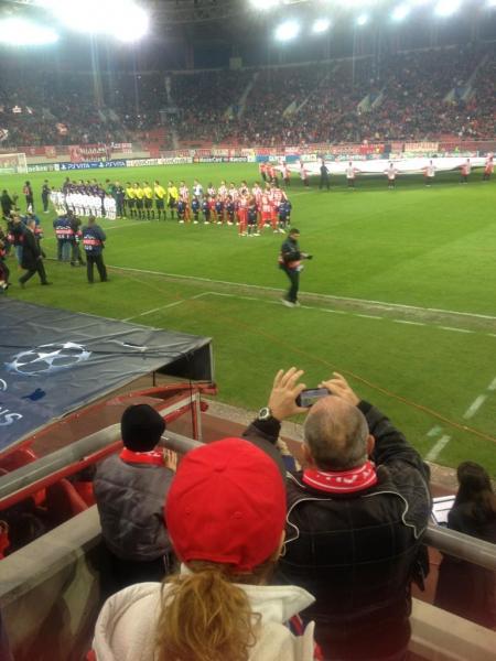 Ο φόργουορντ των «ερυθρόλευκων» άφησε για λίγο την μπάλα του μπάσκετ και πήγε στο φαληρικό στάδιο, ώστε να δει από κοντά το ματς με την Άρσεναλ για το Champions League.