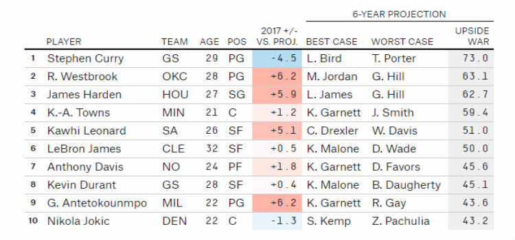 Έτσι, ο Έλληνας διεθνής βρίσκεται, για ακόμα μια φορά σε μία... τρομερή δεκάδα, πίσω από ονόματα-μεγαθήρια, όπως αυτά των Στεφ Κάρι (ο οποίος είναι στην κορυφή), Ράσελ Γουέστμπρουκ, Τζέιμς Χάρντεν, Καρλ Άντονι Τάουνς, Καουάι Λέοναρντ, ΛεΜπρόν Τζέιμς, Άντονι Ντέιβις και Κέβιν Ντουράντ.