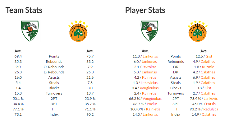 Αγωνιστικά, ο Σάσα Τζόρτζεβιτς δεν έχει να σκέφτεται για κάποια νέα απουσία. Μοναδικός που βρίσκεται σταθερά στα πιτς είναι ο Λευτέρης Μποχωρίδης. Αντίθετα, η Ζαλγκίρις Κάουνας συνεχίζει χωρίς τον Ρεϊνάλντας Σεϊμπούτις.