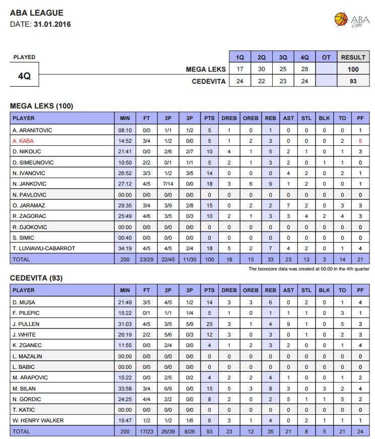 Οι Κροάτες έπαιξαν τραγική άμυνα και φυσικά οι παίκτες της Μέγκα Λεκς το εκμεταλλεύτηκαν αφού έξι εξ αυτών σκόραραν διψήφιο αριθμό πόντων.