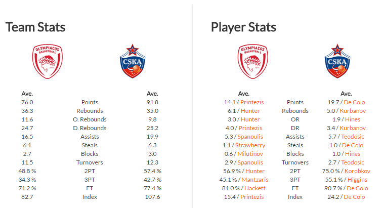 *Ο Νάντο Ντε Κολό έχει πετύχει διψήφιο αριθμό πόντων στις 26 τελευταίες του συμμετοχές στην Ευρωλίγκα, ενώ μετράει τουλάχιστον 1 τρίποντο στα 12 πιο πρόσφατα ματς του στη διοργάνωση.