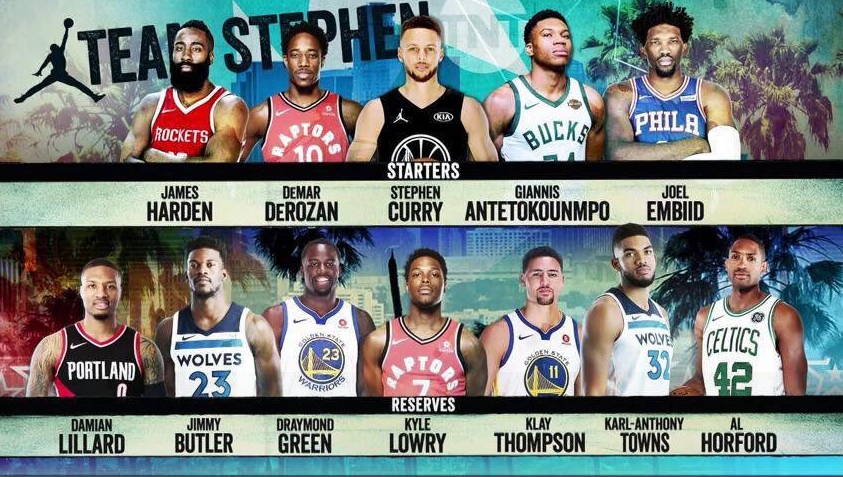 O Στεφ Κάρι ήταν ο πρώτος και καλύτερος στην Δύση και είναι και ο δεύτερος αρχηγός των δύο ομάδων. Με τις πρώτες του δηλώσεις να επικεντρώνονται στον... Γιάννη Αντετοκούνμπο κατάφερε τελικά και τον πήρε στην ομάδα του και μαζί με Χάρντεν, ΝτεΡόζαν και Εμπίντ η βασική πεντάδα του είναι... σκληροπυρηνική. Ατυχίες για τον άσο των Ουόριορς, μέχρι τώρα, δεν υπήρξαν και θα έχει την ομάδα που διάλεξε δίπλα του στο παρκέ.