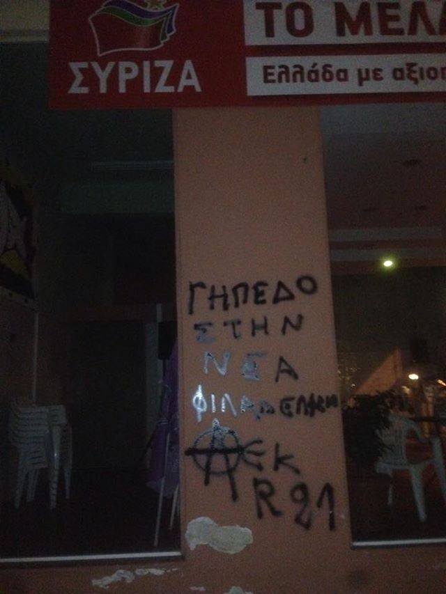 Όπως μπορείτε να διαπιστώσετε και στις φωτογραφίες που δημοσιεύει το gazzetta.gr, μετά την απαγόρευση παρουσίας "κιτρινόμαυρων" οπαδών στην ομιλία Τσίπρα στην Κομοτηνή από την αστυνομία με εντολή του ΣΥΡΙΖΑ, αλλά και τις ατάκες της Δούρου που φέρεται να αποκάλεσε χρυσαυγίτες τους Ενωσίτες (κάτι που σιχαίνονται και πολεμούν οι ΑΕΚτσήδες) οι τελευταίοι επισκέφτηκαν τοπικές οργανώσεις της Αθήνας και έγραψαν συνθήματα.