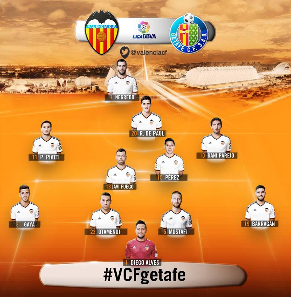 Βαλένθια: Άλβες, Μπαραγκάν, Μουστάφι, Οταμέντι, Γκαγιά, Παρέχο, Φουέγο, Πέρες (73' Ροντρίγκο), Ντε Πολ (60' Φεγκουλί), Νεγρέδο, Πιάτι