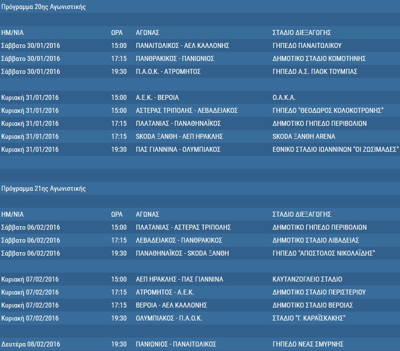 Αναλυτικά το πρόγραμμα της Σούπερ Λίγκας από την 20ή μέχρι την 30ή αγωνιστική
