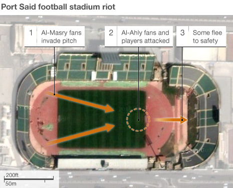 Η Αίγυπτος συνεχίζει να ζει μέσα στο χάος και το ντόμινο που ξεκίνησε μετά την ποδοσφαιρική τραγωδία στο Πορτ Σάιντ συνεχίζεται. Οι κόσμος κατηγορεί την αστυνομία για εγκληματική αμέλεια, η κυβέρνηση αποφάσισε να βγάλει ξανά τον στρατό στους δρόμους και ο ξεσηκωμός αποκτά τεράστιες διαστάσεις. Στην πόλη του Σουέζ δύο άνθρωποι σκοτώθηκαν από πυρά αστυνομικών κατά τη διάρκεια πορείας, ενώ στο Κάιρο χιλιάδες διαδηλωτές παρέμειναν στους δρόμους για όλη τη μέρα, έχοντας ανά τακτά χρονικά διαστήματα με την αστυνομία. Όπως αναφέρουν ρεπόρτερς από το Κάιρο, το θέμα έχει ξεσηκώσει πάρα πολύ κόσμο με το κλίμα να θυμίζει... εμφύλιο!