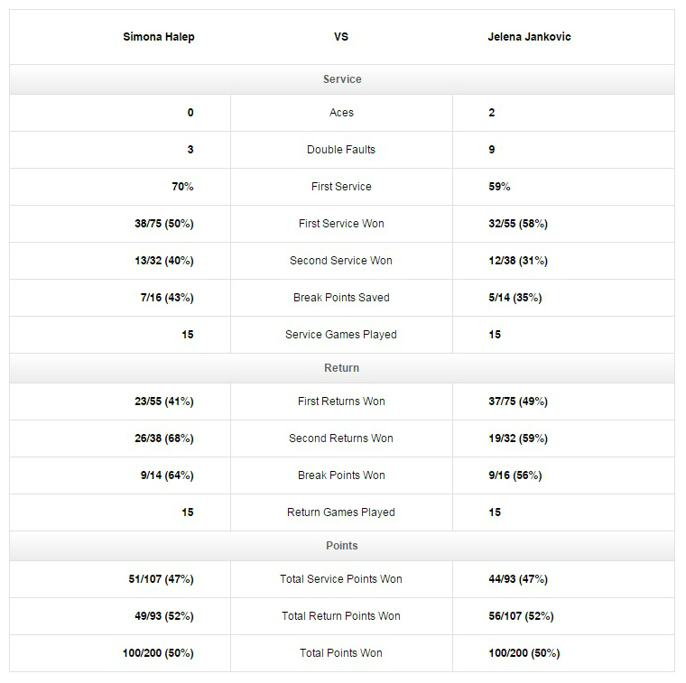Η Ρουμάνα τενίστρια, αν και έχασε το πρώτο σετ με 2-6 και αγωνιζόταν με ενοχλήσεις στο αριστερό της πόδι, κατάφερε να επιστρέψει στο ματς και να πάρει τα δύο επόμενα με 7-5 και 6-4. Η Χάλεπ, που βρέθηκε απευθείας στον τελικό, μετά την απόσυρση της Σερένα Γουίλιαμς λόγω τραυματισμού, κατέκτησε στην Καλιφόρνια τον πρώτο μεγάλο τίτλο της καριέρας της.