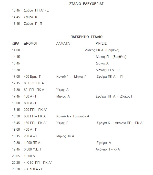 Ειδικά το αγώνισμα της Σφυροβολίας θα διεξαχθεί στο στάδιο «Ελευθερίας», στις καινούργιες βαλβίδες ρίψεων που κατασκευάζονται για τις ανάγκες του Ευρωπαϊκού πρωταθλήματος.