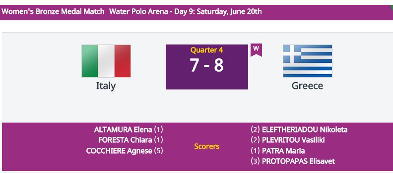 Τα κορίτσια της εθνικής Ελλάδος σε ένα συναρπαστικό μικρό τελικό που είδατε με live εικόνα από το gazzetta επικράτησαν της Ιταλίας και ανέβηκαν στην 3η θέση του βάθρου στους Ευρωπαϊκούς Αγώνες του Μπακού! Ουσιαστικά η μεγάλη νίκη για την Ελλάδα... κλείδωσε λίγο πριν το φινάλε της 3ης περιόδου όταν η διαφορά έφτασε στα 4 γκολ (4-8).