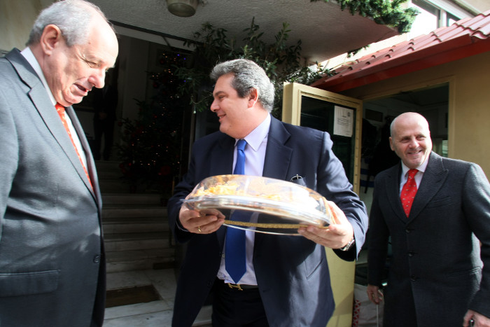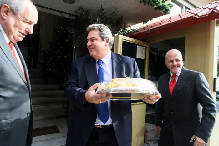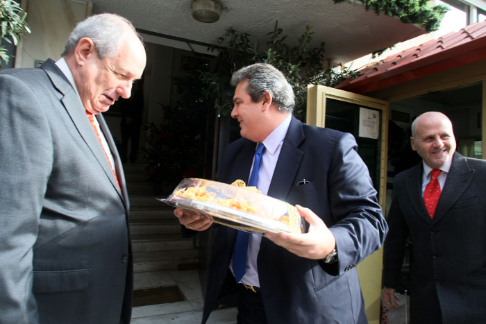 Ο πρόεδρος των ΑΝΕΛ προσήλθε στη συνάντηση κρατώντας στα χέρια ξεροτήγανα Χριστουγέννων.