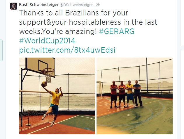 Δεν χρειάζεται να κάνεις πολλά για να το αντιληφθείς. Αρκεί να ρίξεις μια ματιά στα twitter accounts των ποδοσφαιριστών της Γερμανίας. Να δεις τα “σ' ευχαριστούμε Βραζιλία”, τα “οι Βραζιλιάνοι είστε μοναδικοί”, τα “καλή τύχη Βραζιλία στον μικρό τελικό” και τόσα άλλα που έχουν τουιτάρει ο Σβάινστάιγκερ, ο Ποντόλσκι και τα άλλα παιδιά, όπως και ένα σωρό μηνύματα από τα social media accounts της γερμανικής ομοσπονδίας και της Εθνικής ομάδας της Γερμανίας. Συντονισμένοι σε όλο αυτό είναι και αρκετοί δημοφιλείς Γερμανοί πρώην διεθνείς ποδοσφαιριστές, ακόμη και γερμανικά media. Ο Ποντόλσκι έφτασε να “μάθει” να τουιτάρει στην γλώσσα των Βραζιλιάνων για να τους φέρει πιο κοντά. Την ίδια ώρα που η γερμανική ομοσπονδία επικοινωνεί μέσω των media όλες τις φιλανθρωπικές πράξεις και δράσεις των Γερμανών κατά την παραμονή τους στη Βραζιλία.