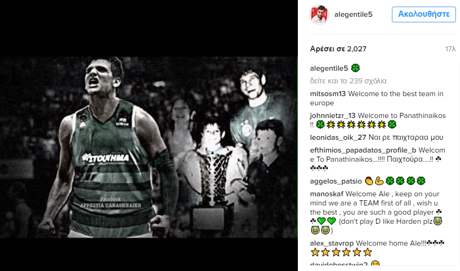 O Αλεσάντρο Τζεντίλε δεν... κρατιέται με τίποτα αφού λίγα λεπτά αφού πήρε το «ΟΚ» από την Αρμάνι Μιλάνο, ανέβασε στο Instagram φωτογραφία με τη φανέλα του Παναθηναϊκού!