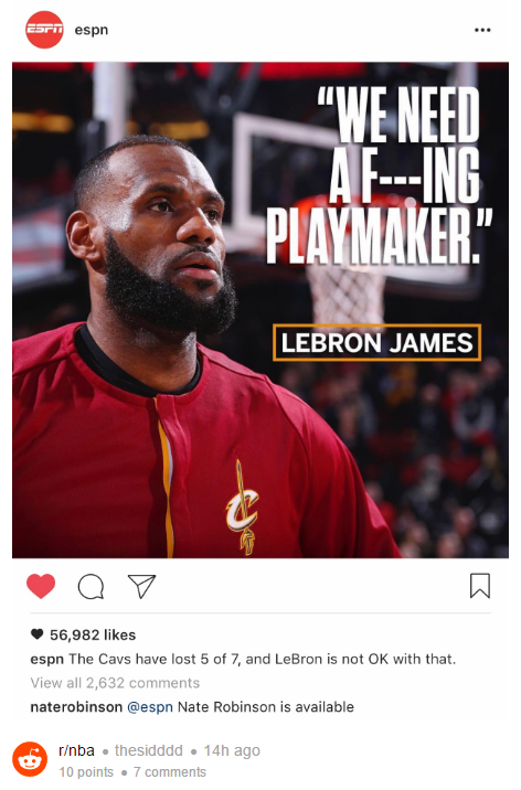 Σε ανάρτηση του ESPN στο Instagram με τη δήλωση του «Βασιλιά», ο Krypto-Nate άφησε σχόλιο ότι «ο Νέιτ Ρόμπινσον είναι διαθέσιμος».