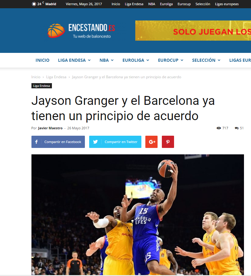 Το συμβόλαιό του με την Εφές ολοκληρώνεται στα τέλη του Ιουνίου και όπως έχουν γράψει οι Ισπανοί αναμένεται να συνεχίσει την καριέρα του στη Βαρκελώνη...
