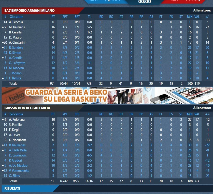 Η Αρμάνι Τζινς Μιλάνο ήταν... καταιγιστική στην έδρα της! Οι γηπεδούχοι έτρεξαν απίστευτη πρώτη περίοδο (29-8 στο 10') και ουσιαστικά... καθάρισαν τη νίκη από το πρώτο δεκάλεπτο. Πλέον, η Αρμάνι προηγείται της σειράς με 3-2 και στο επόμενο παιχνίδι θα έχει την ευκαιρία να διεκδικήσει το πρωτάθλημα.