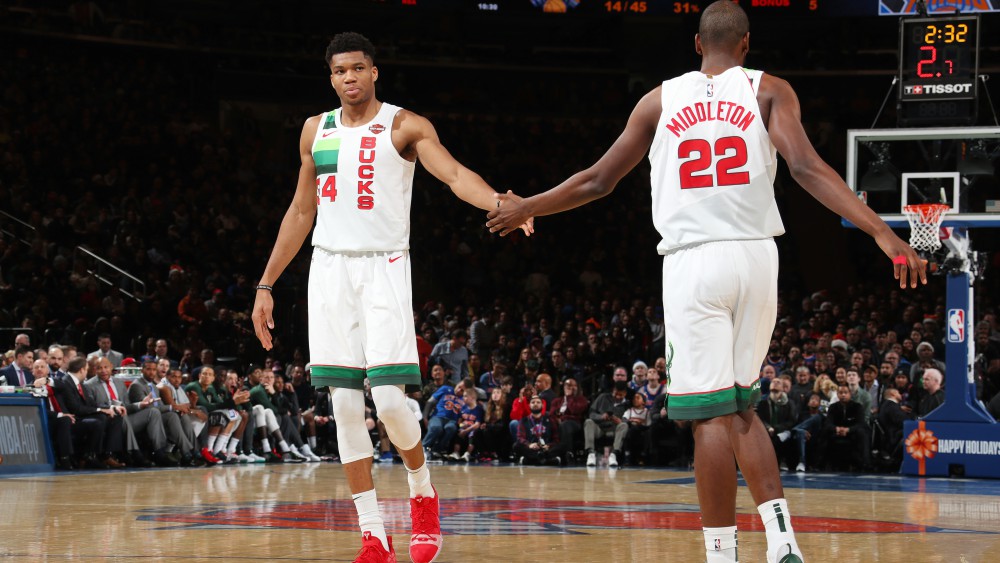 Στην πρώτη θέση είναι ο Greek Freak, αφού μπορεί να ανανέωσε το συμβόλαιο του και να το υπερδιπλασίασε, αλλά ακόμα και έτσι η προσφορά του στις νίκες της ομάδας του είναι πολύ μεγαλύτερη, ενώ μετά από 6 χρόνια στο Μιλγουόκι έχει καταφέρει να αλλάξει το επίπεδο των Ελαφιών. Οι Μπακς τερμάτισαν πρώτοι και καλύτεροι στο ΝΒΑ και δεν μπορεί παρά να είναι το φαβορί, τουλάχιστον με αυτά που έδειξαν σε ολόκληρη την κανονική διάρκεια.