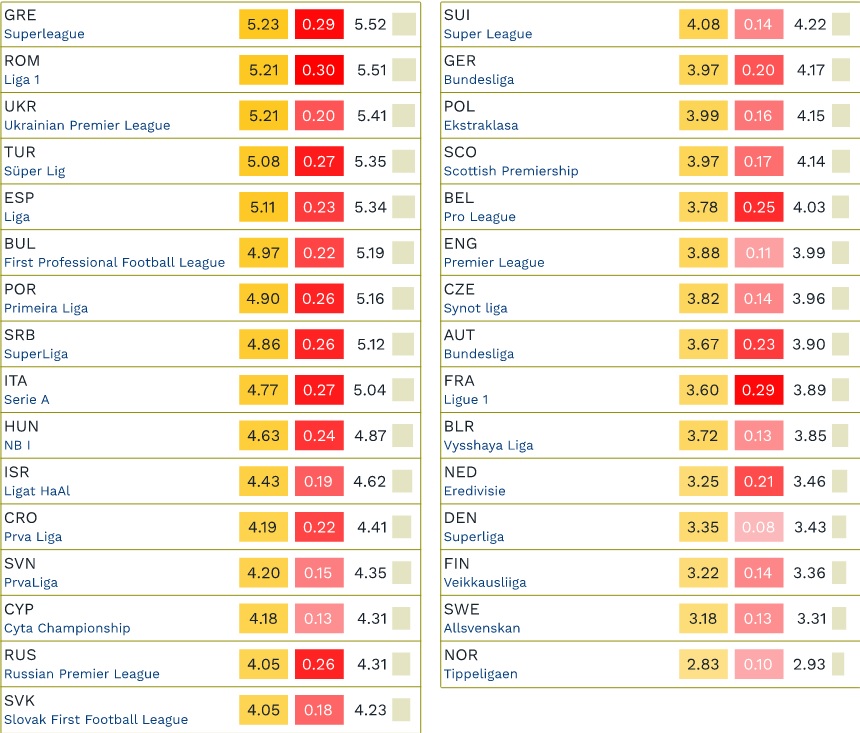 Τη... διόλου τιμητική πρωτιά στις κάρτες, ανάμεσα σε 31 πρωταθλήματα στη Γηραιά Ήπειρο, καταλαμβάνει η ελληνική Σούπερ Λιγκ!