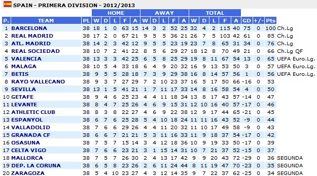 Μέχρι την τελευταία αγωνιστική δεν είχε υποβιβαστεί καμία ομάδα. Η Λα Κορούνια βρισκόταν πάνω από την γραμμή και ακολουθούσαν Θέλτα, Σαραγόσα, Μαγιόρκα. Τελικά εκείνη που πανηγύρισε ήταν η Θέλτα. Η ήττα της Ντέπορ στο «Ριαθόρ» βοήθησε τη «συμπατριώτησα» της από τη Γαλικία να παραμείνει. Κόντρα στην Εσπανιόλ η Θέλτα άνοιξε από νωρίς το σκορ και περίμενε στο... ακουστικό της για τα ευχάριστα. Στο 15' ο κορυφαίος της, Ιάγο έκανε υπέροχη ενέργεια και σέρβιρε έτοιμο γκολ στον Ινσα. Αυτό ήταν αρκετό για να κερδιθεί η κατηγορία. Με ηττημένη τη Λα Κορούνια, η Θέλτα δεν είχε να ανησυχεί για της Μαγιόρκα και Σαραγόσα. Η πρώτη μπορεί να νίκησε 4-2 τη Βαγιαδολίδ, αλλά δεν προλάβαινε, ενώ η Σαραγόσα διαλύθηκε εντός από την Ατλέτικο Μαδρίτης (1-3). Κατά συνέπεια η ομάδα του Μανόλο Χιμένεθ όχι μόνο υποβιβάστηκε, αλλά τερμάτισε τελευταία και καταϊδρωμένη, ενώ μάλιστα μέχρι τον Δεκέμβρη κοίταζε προς Ευρώπη μεριά.