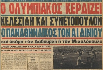 Στην «Αθλητική Ηχώ» της Τετάρτης, 1 Ιουλίου του 1970, διαβάζουμε στο πρωτοσέλιδο: «Ο Ολυμπιακός κερδίζει Κελεσίδη και Συνετόπουλο». Και συνεχίζει το ρεπορτάζ: «Μετά την απόκτησιν του "άσσου" Παμπουλή οι "Ερυθρόλευκοι" εξασφαλίζουν άλλους τρεις παίκτας. Συγκεκριμένως πληροφορούμαστε ότι πρέπει πλέον να θεωρηθή σαν γεγονός η μεταγραφή του Τάκη Συνετόπουλου. Επίσης ο Ολυμπιακός αποκτά και τον διεθνή γκολκίπερ του Πανσερραϊκού Κελεσίδην. Τέλος μεγάλες προσπάθειες γίνονται και για τον περίφημον σέντερ-μπακ της Ν. Σαλαμίνος Κουρέαν». Την Κυριακή 5 Ιουλίου, η ιστορική εφημερίδα βγαίνει αναγράφοντας στο πρωτοσέλιδό της: «Ο Συνετόπουλος δίνεται σήμερα στον Ολυμπιακό. Συνεκλήθη σύσκεψι στο Βόλο λίγο προ του μεσονυκτίου. Παρ' ότι οι φίλαθλοι της πόλεως δεν επιθυμούν μετακίνηση του διεθνούς άσσου, εν τούτοις η Διοίκησης είναι αποφασισμένη να τον δώση».