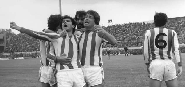 * Το ερυθρόλευκο χρώμα της φανέλας θα περάσει για πρώτη φορά από τους δέκτες τον Δεκέμβριο του 1979. Και πάλι το παιχνίδι είναι κόντρα στην ΑΕΚ (0-1 ο Ολυμπιακός με γκολ του Κοκολάκη στο 27').