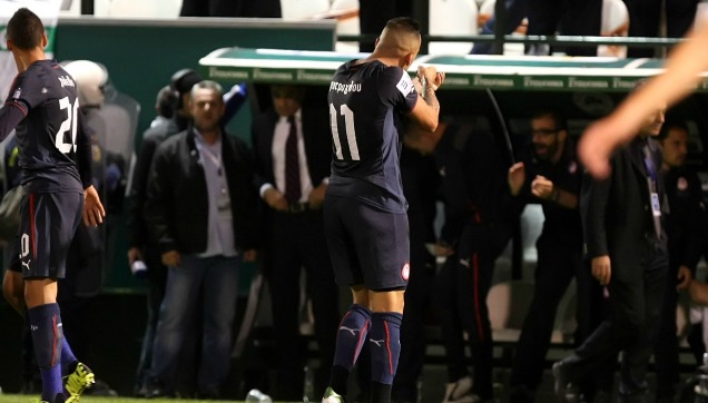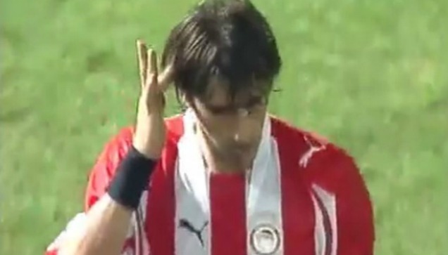 Σκοράρει κόντρα στον Ολυμπιακό και κάτι δείχνει με τα χέρια του. Πόση δύναμη έχει; Πόσο... σκληρό ήταν το γκολ που πέτυχε...; Αγνωστο.