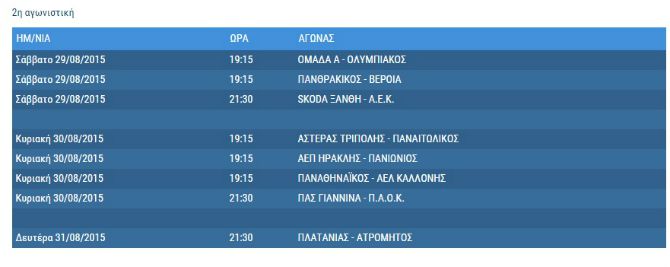 Δείτε το αναλυτικό πρόγραμμα της 1ης & 2ης αγωνιστικής ημέρας της Super League, για την περίοδο 2015-2016: