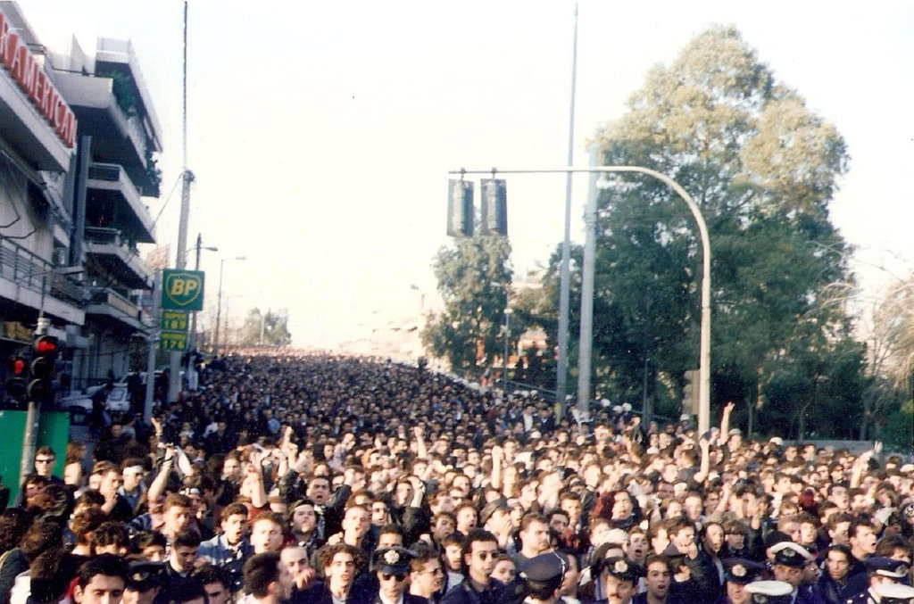 Τρεις μέρες μετά την κατάκτηση του κυπέλλου Κόρατς, στις 19 Μαρτίου 1994, πάνω από 5.000 φίλοι του Δικεφάλου οδηγούνται με πορεία από την Ομόνοια στο ΣΕΦ, για το μπασκετικό ντέρμπι με τον Ολυμπιακό του Γιάννη Ιωαννίδη. Η αστυνομία φοβάται επιθέσεις στα τρένα του ηλεκτρικού, που θα μετέφεραν τόσο πολύ κόσμο από το κέντρο στον Πειραιά και ο επικεφαλής αποφάσισε να οδηγήσει τον κόσμο του ΠΑΟΚ στο γήπεδο με τα πόδια κι αφού πρώτα διέσχιζαν μια απόσταση 10 χιλιομέτρων. Κανείς άλλος οπαδός δεν έχει περπατήσει οργανωμένα τόσα χιλιόμετρα σε μια... εχθρική πόλη.