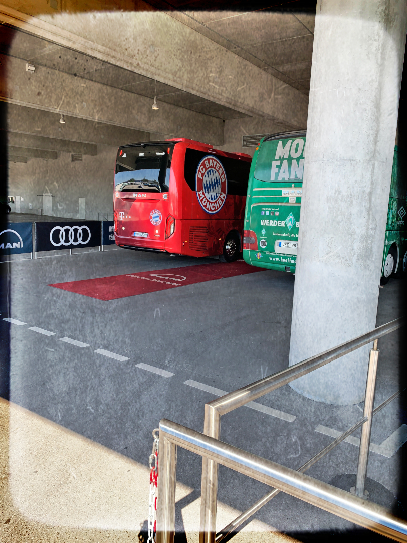 Αστυνομικοί δεν υπήρχαν για να συνοδεύσουν το λεωφορείο με την αποστολή της Βέρντερ. Η άφιξή του συνέπεσε με τη δική μου, κι έμεινα σαστισμένος να το παρακολουθώ να παρκάρει δίπλα σε εκείνο της Μπάγερν την ώρα που περνούσαν οπαδοί της Μπάγερν για να φτάσουν στην θύρα εισόδου τους στο γήπεδο. Δεν είδα και δεν άκουσα τίποτα από αυτά που ζω κάθε φορά που πηγαίνω να παρακολουθήσω ένα αντίστοιχο ποδοσφαιρικό παιχνίδι σε ελληνικό γήπεδο. Τίποτα. Απολύτως. Τίποτα δεν είναι ίδιο.