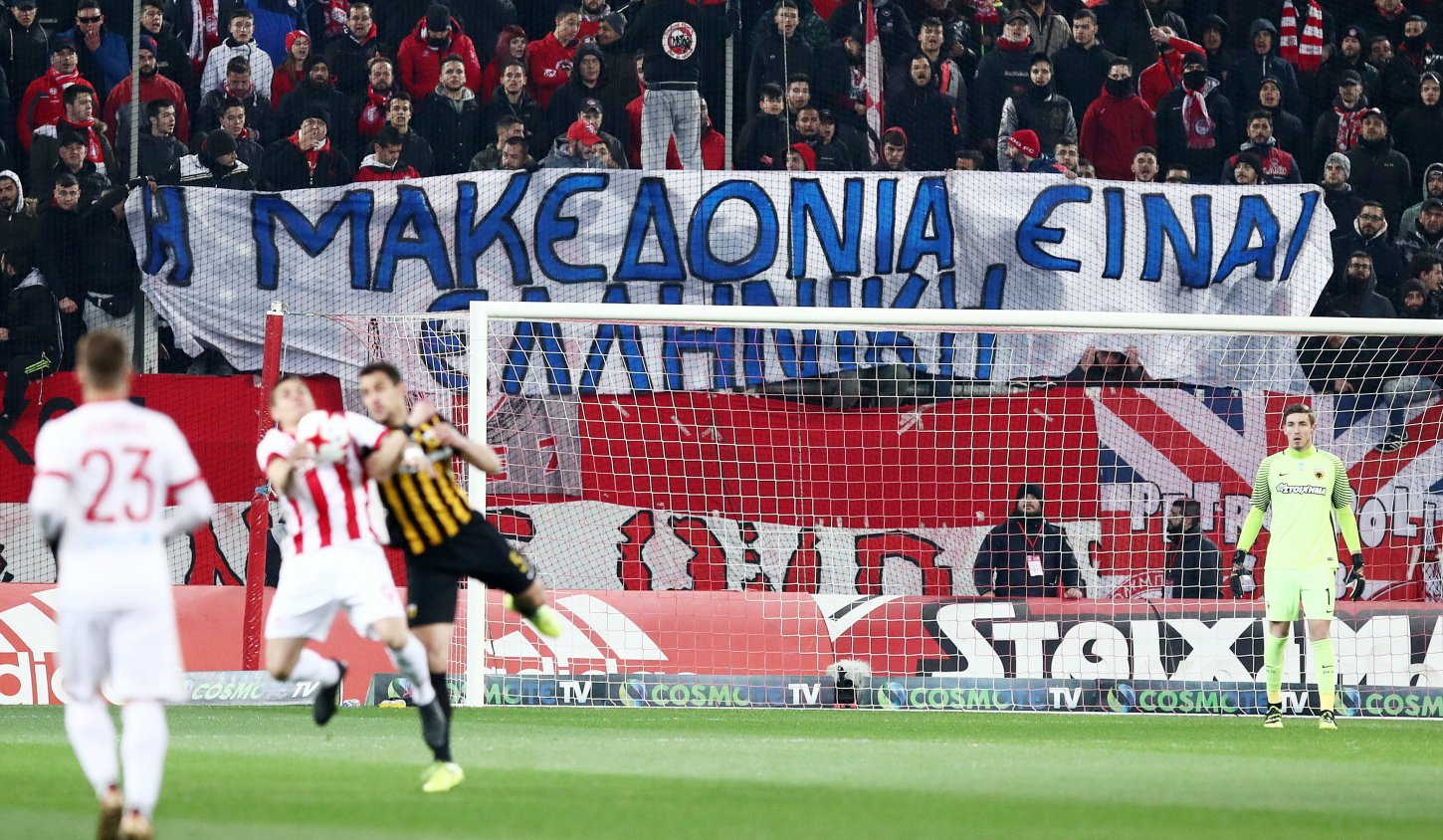 Συγκεκριμένα κατά την διάρκεια του αγώνα Κυπέλλλου ανάμεσα στον Ολυμπιακό και την ΑΕΚ, οι οργανωμένοι φίλοι των γηπεδούχων που βρίσκονται στην Θύρα 7 σήκωσαν πανό που με μπλέ γράμματα έγραφε: «Η ΜΑΚΕΔΟΝΙΑ ΕΙΝΑΙ ΕΛΛΗΝΙΚΗ».