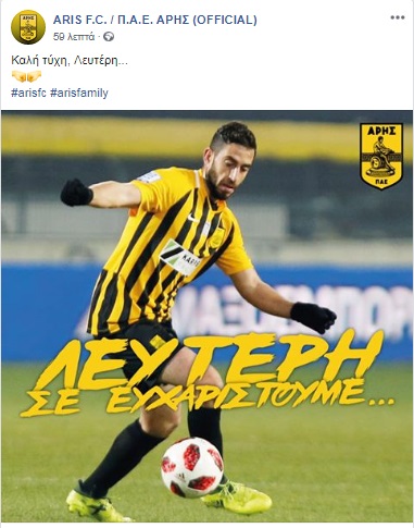 Ο έμπειρος μέσος δεν συμπεριλαμβανόταν στα σχέδια του Σάββα Παντελίδη ενόψει της ερχόμενης αγωνιστικής περιόδου, ενημερώθηκε σχετικά και θα συνεχίσει σε άλλη ομάδα την καριέρα του. Με ανάρτησή της στους λογαριασμούς της στα social media, η ΠΑΕ Άρης ενημέρωσε σχετικά με το τέλος αυτής της συνεργασίας.