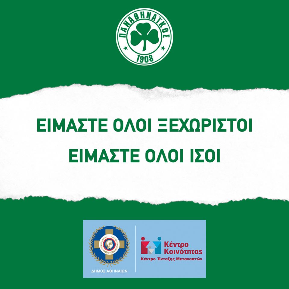 Η ανακοίνωση της ΠΑΕ Παναθηναϊκού, για την σπουδαία κίνηση που γίνεται σε συνεργασία με το Κέντρο Ένταξης Μεταναστών του Δήμου Αθηναίων αναφέρει:
