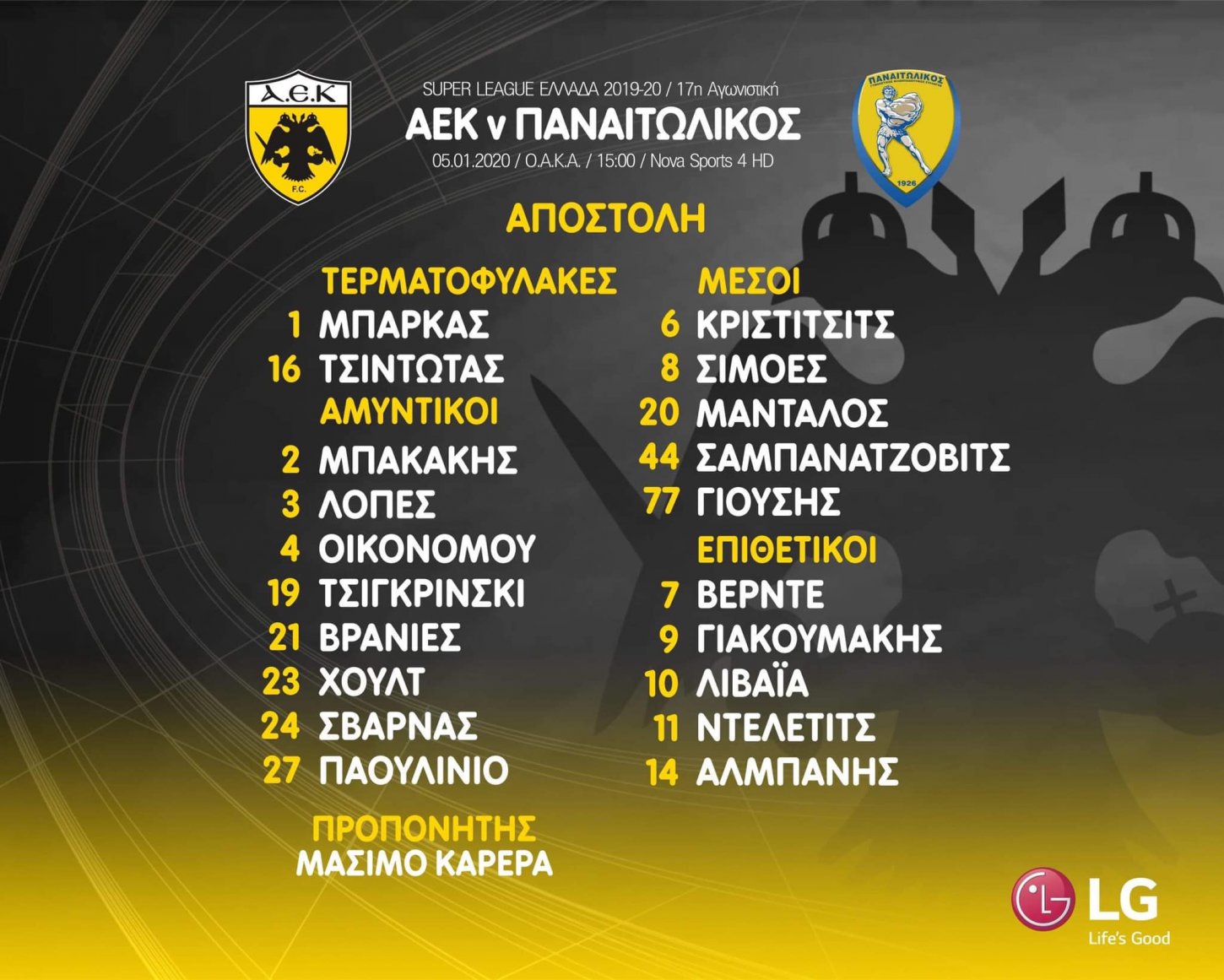 ΑΕΚ: Οι 20 του Καρέρα και τα πλάνα για Παναιτωλικό