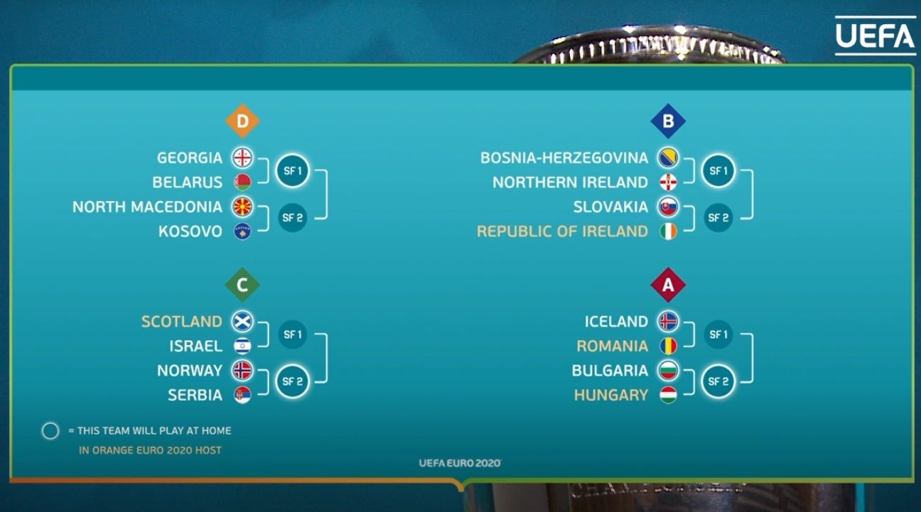 Από την League Α λοιπόν θα προκριθεί στο Euro μία από τις: Ισλανδία, Ουγγαρία, Βουλγαρία και Ρουμανία. Η κλήρωση έχει ως εξής