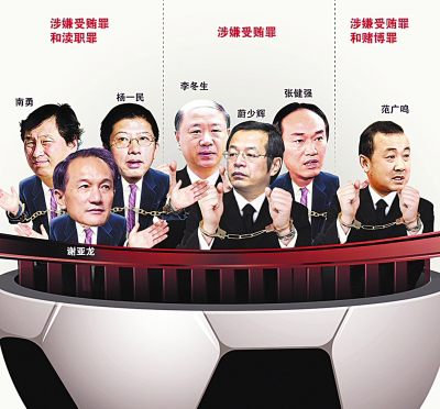 Το σκάνδαλο με τα στημένα παιχνίδια είναι σχετικά πρόσφατο στην Κίνα. Πριν από τρία χρόνια,αρκετοί υψηλού προφίλ διαιτητές, παίκτες, προπονητές και διοικητικοί παράγοντες καταδικάστηκαν, γεγονός που έδωσε την αίσθηση ότι... κάτι αλλάζει. Περίπου 60 άτομα ήταν μπλεγμένα, σύμφωνα με την αστυνομία, οι έρευνες της οποίας διήρκεσαν δύο χρόνια. Οι σπόνσορες που είχαν συγκεντρωθεί απομακρύνονταν από το άθλημα, ενώ το τηλεοπτικό δίκτυο CCTV αρνούταν να μεταδώσει παιχνίδια! Τελικά, τιμωρήθηκαν 58 άτομα, ανάμεσα τους και ο αντιπρόεδρος της Ομοσπονδίας που φυλακίστηκε, καθώς και 12 ομάδες. Μέσα σε όλα, ήρθε και ο αποκλεισμός στα προκριματικά του Μουντιάλ 2014, για να κάνει τα πράγματα ακόμα χειρότερα. Μετά την καταιγίδα ωστόσο, έρχεται ο ήλιος και αμέσως έγιναν προσπάθειες ανασυγκρότησης.