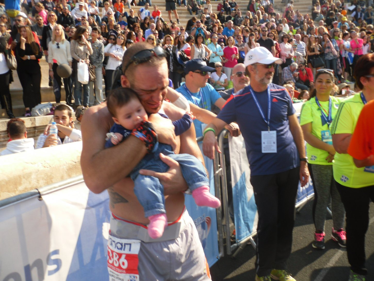Όπως έκανε κι ένας νέος πατέρας, που πήρε αγκαλιά το νεογέννητο παιδάκι του και μόλις τερμάτισε, ξέσπασε σε λυγμούς. Αμέτρητα συναισθήματα αναμεμιγμένα σε μία τόσο ανθρώπινη στιγμή.
