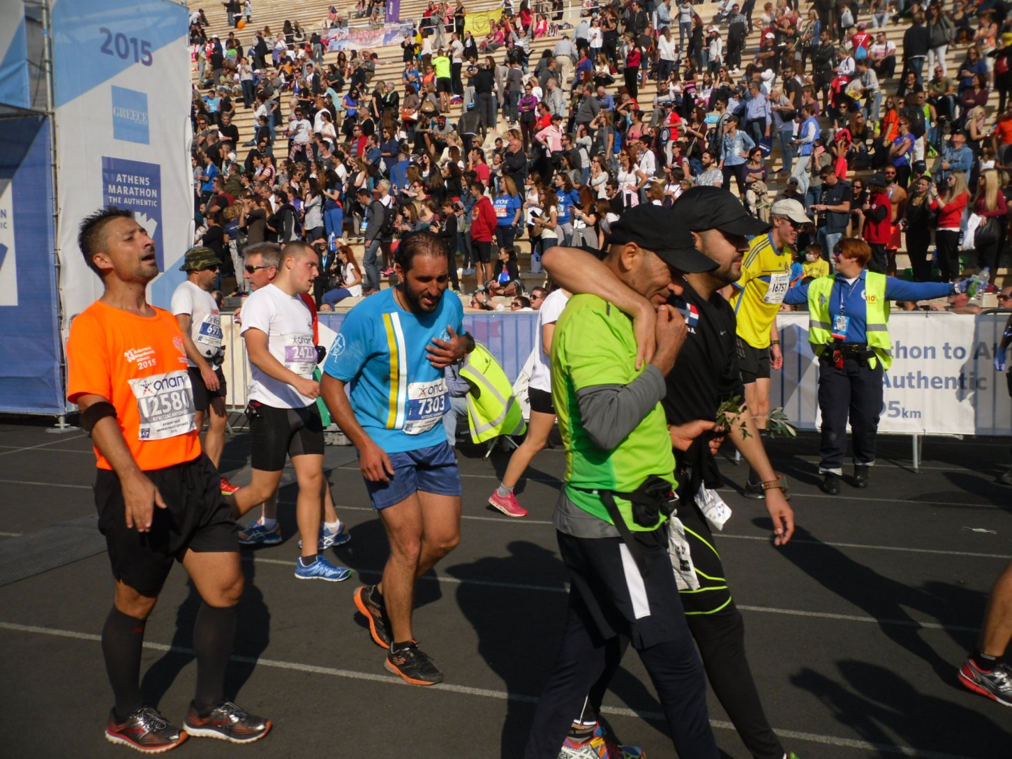 Ο τερματισμός του κάθε δρομέα δεν ήταν ένα απλό σταμάτημα στο χρονόμετρο αλλά μία έκρηξη συναισθημάτων. Δεν ήταν λίγοι αυτοί που περνώντας την γραμμή τερματισμού, έσκυψαν κάτω, φίλησαν το έδαφος και υποκλίθηκαν στους τεράστιους συμβολισμούς του Παναθηναϊκού Σταδίου, του ιστορικού τόπου που έχει συνδεθεί με την ιστορία των Ολυμπιακών Αγώνων, αλλά και της αυθεντικής διαδρομής του Μαραθωνίου.