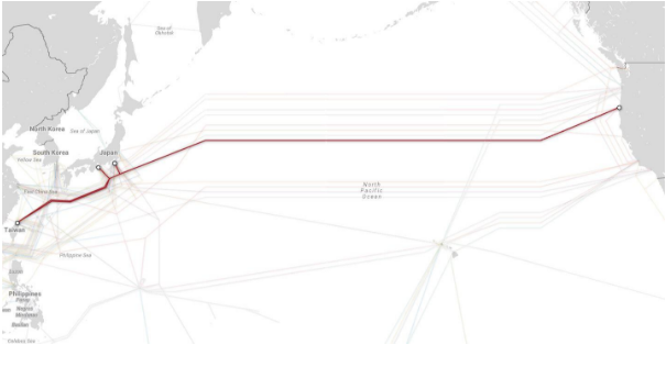 Μπορούμε να δούμε ότι οι ΗΠΑ και η Ιαπωνία συνδέονται με καλώδια μήκους περίπου 10.000 χιλιομέτρων!