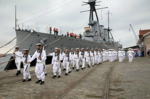 Το θρυλικό θωρηκτό Αβέρωφ, έδεσε στο λιμάνι της Θεσσαλονίκης, όπου άγημα του Πολεμικού Ναυτικού απέδωσε τιμές. Μετά από πολλές δεκαετίες το ιστορικότερο πλοίο του Πολεμικού Ναυτικού έπλευσε μακριά από την μόνιμη θέση ελλιμενισμού του στην Μαρίνα Φλοίσβου στο Τροκαντερό.