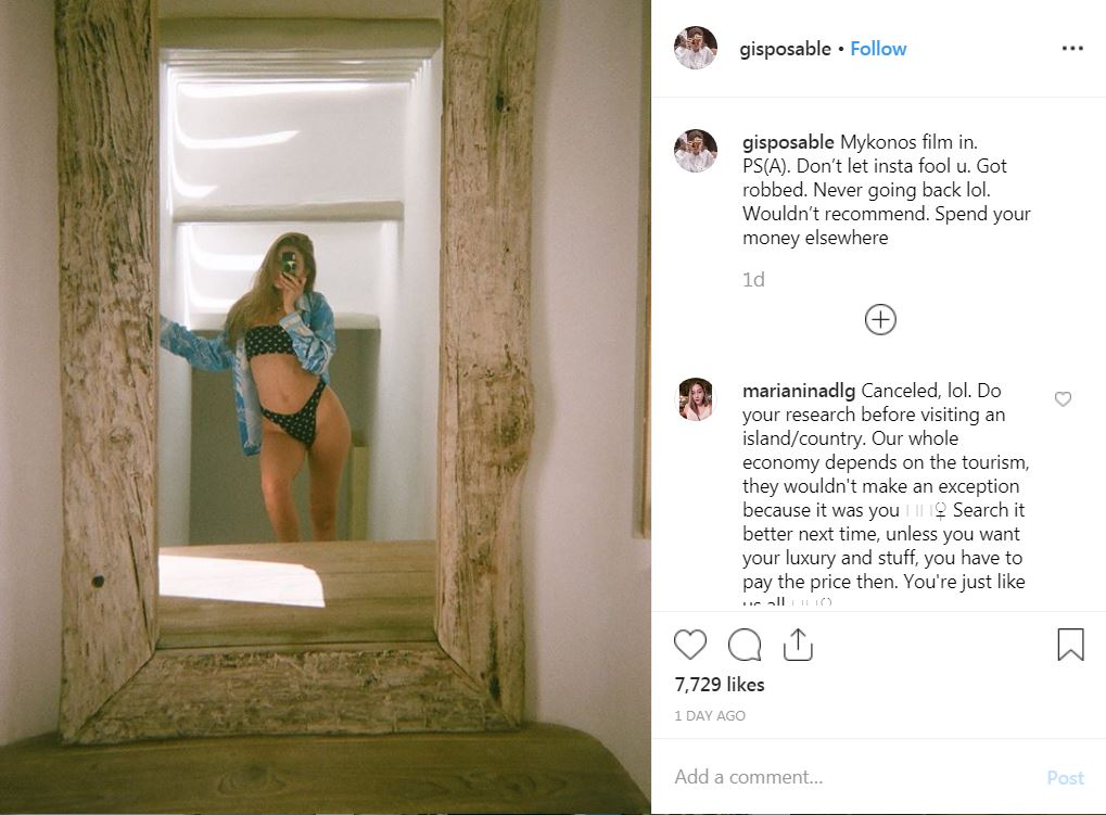 Περισσότερες λεπτομέρειες δεν έγιναν γνωστές, αλλά σίγουρα το ποστάρισμα που έκανε στο Instagram, δυσφημίζει το νησί.