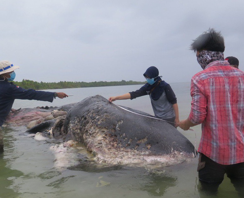 Η φάλαινα μήκους 9,5 μέτρων βρέθηκε στη θαλάσσια περιοχή κοντά στο νησί Κάποτα, τμήμα του Εθνικού Πάρκου Γουακατόμπι, στα νοτιοανατολικά του Σουλαουέζι, αναφέρει σε ανακοίνωσή του το πάρκο.