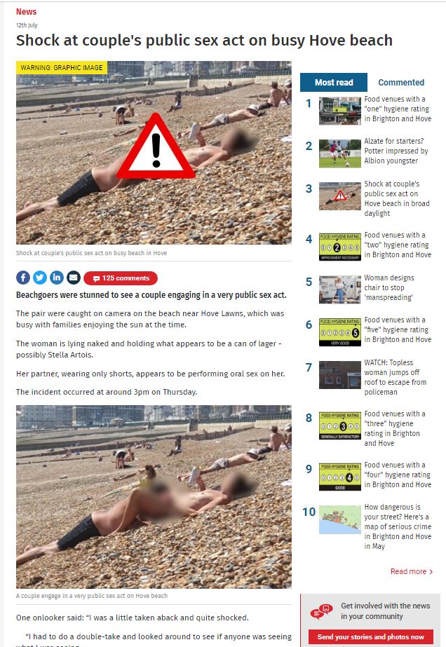 Αντιδράσεις έχει προκαλέσει στο Μπράιτον της Αγγλίας, η είδηση πως ένα ζευγάρι αποφάσισε να ικανοποιήσει τις σεξουαλικές του ορέξεις σε δημόσια παραλία.