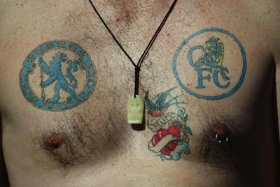 Είναι Τσέλσι. Το καταλάβαμε. Δεν αρκέστηκε στο σήμα στο στήθος στο ύψος της καρδιάς, από την αριστερή πλευρά. Θέλησε να προσθέσει και έναν κακοφτιαγμένο από την άλλη μεριά. Το τρίτο από κάτω δένει το γλυκό...