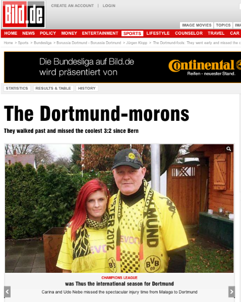 Είναι συχνό φαινόμενο να βλέπουμε κόσμο να φεύγει από το γήπεδο πριν το σφύριγμα της λήξης. Άλλοι για να μην... κολλήσουν στην κίνηση, άλλοι γιατί πιστεύουν ότι το ματς έχει κριθεί. Ο Ούντο Νέμπε και η 25χρονη κόρη του όμως το παράκαναν! Με το ματσάκι στο 1-2 και την Ντόρτμουντ να ψάχνει το μεγάλο κόλπο, σηκώθηκαν και έφυγαν! Έχασαν έτσι το γκολ του Ρόις που έφρε την ισοφάριση και την πρόκριση με τον Φελίπε Σαντάνα!