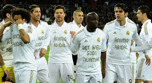 Οι παίκτες της Ρεάλ Μαδρίτης δεν ξέχασαν τόσο τον Μουάμπα, όσο και τον Ερίκ Αμπιντάλ. Και δεν πρέπει να προξενεί εντύπωση το ότι παίζει στη Μπαρτσελόνα. Οι ποδοσφαιριστές των δύο ομάδων έχουν να χωρίσουν πράγματα μόνο μέσα στον αγωνιστικό χώρο. Οι παίκτες των Μερένγκες έκαναν την εμφάνισή τους με μπλουζάκια που στο μπροστινό μέρος έγραφαν «Animo Abidal», δηλαδή κουράγιο Αμπιντάλ και στο πίσω «Get well soon Muamba». «Γίνε καλά σύντομα Μουάμπα».