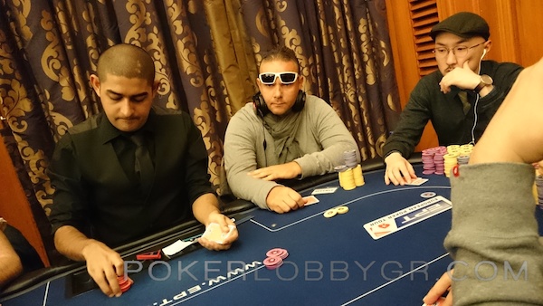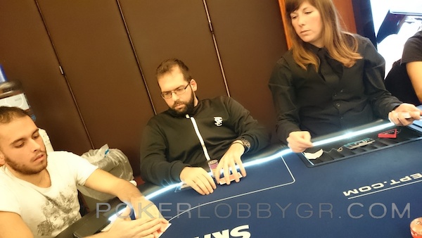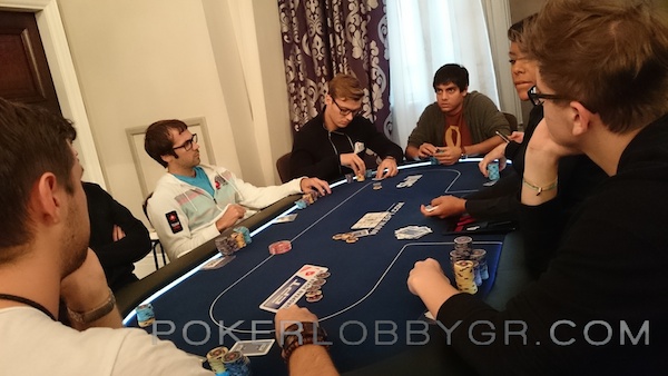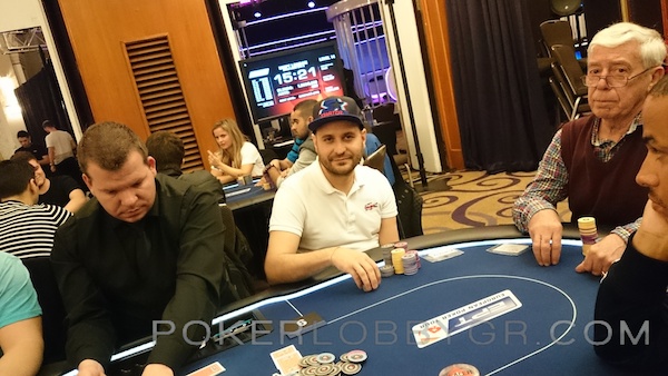 Ο Κύπριος παίκτης ανακοίνωσε all in στις 75.000 μάρκες από το button με Α-7 και ο big blind έκανε το call με 2-2. Το board δεν βοήθησε τον Έλληνα παίκτη που βρέθηκε στο rail, ωστόσο εξασφάλισε ένα χρηματικό έπαθλο.
