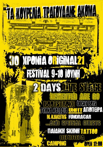 Η μεγαλύτερη οργάνωση οπαδών της ΑΕΚ γίνεται 30 ετών και το διήμερο 9-10 Ιουνίου διοργανώνει ένα μεγάλο πάρτι στο χώρο που βρισκόταν το «Νίκος Γκούμας» στη Νέα Φιλαδέλφεια. Ενα πάρτι ΑΕΚτζήδικο, στο οποίο θα βρεθούν οπαδοί της Ένωσης από κάθε μέρος της Ελλάδας καθώς ετοιμάζονται ήδη τα ταξίδια (με πούλμαν-πλοία-αεροπλάνα). Τα παιδιά της ORIGINAL, μάλιστα, φροντίζουν για τα πάντα (ακόμη και για χημικές τουαλέτες) ώστε να μην υπάρξει το παραμικρό πρόβλημα και όλα να πάνε μια χαρά! Θα υπάρχει χώρος για κάμπινγκ, live μουσική, χώρος για tattoo με την... μπόμπα και πολλά ακόμη!