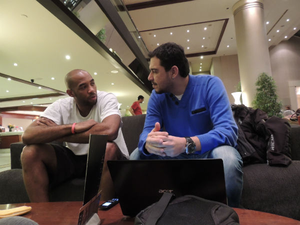 Το ραντεβού δόθηκε στο ξενοδοχείο που έχει καταλύσει η αποστολή της τουρκικής ομάδας, λίγο μετά το δείπνο. Ο Αμερικανός άσος μας υποδέχτηκε με μια… μπανάνα στο χέρι και χαλαρή διάθεση. Έτοιμος να μιλήσει για τα πάντα. Όσο η κουβέντα προχωρούσε, η… συντροφιά μεγάλωνε. Πρώτος «αδιάκριτος» ο Τζόρνταν Φάρμαρ. Ακολούθησε ο Τζόσουα Σιπ. Μαζεύτηκαν κι άλλοι μέχρι που τελικά τον πήραν σχεδόν σηκωτό για να δουν παρέα τη μάχη του Παναθηναϊκού με τη Μπαρτσελόνα.