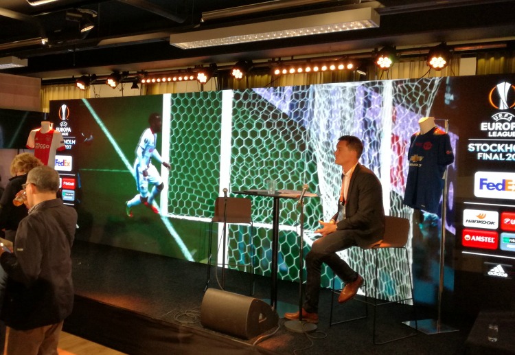 Για να μην ξεχάσουμε, όμως, το λόγο που πήγαμε στο γήπεδο, στο κέντρο του χώρου υπήρχε και μία μεγάλη γιγαντοοθόνη που έδειχνε στιγμιότυπα από τους αγώνες των δύο ομάδων, στο δρόμο για τον τελικό, αλλά και οι φανέλες με τις οποίες Μάντσεστερ Γιουνάιτεντ και Αγιαξ θα έπαιζαν στον τελικό!