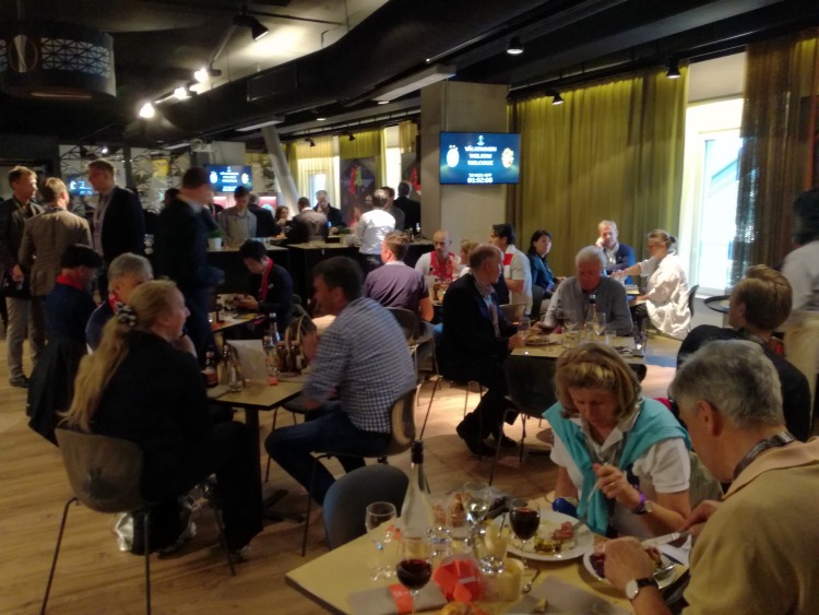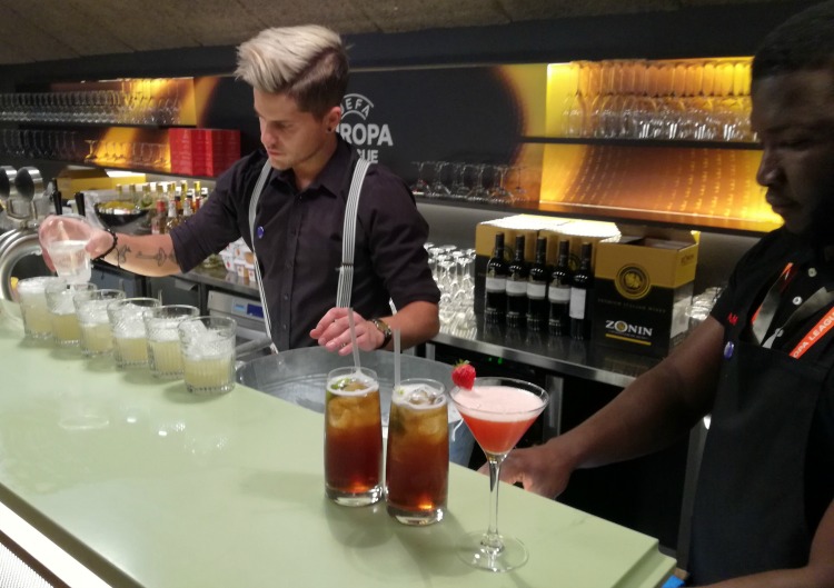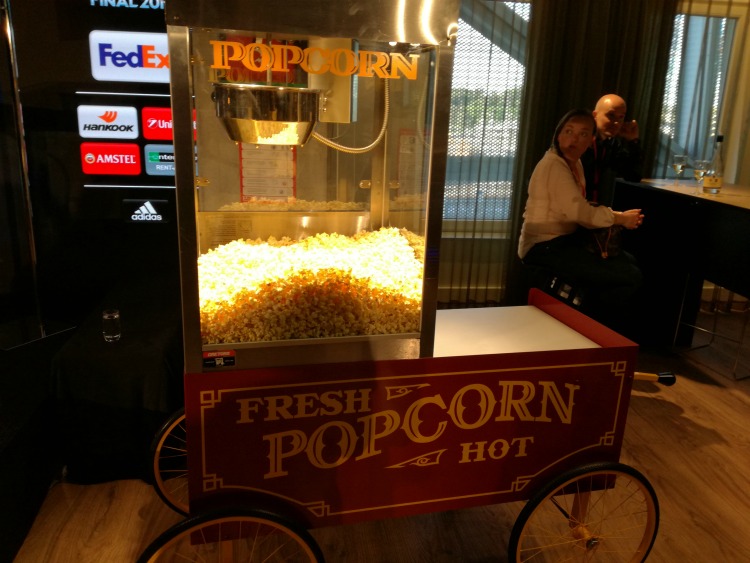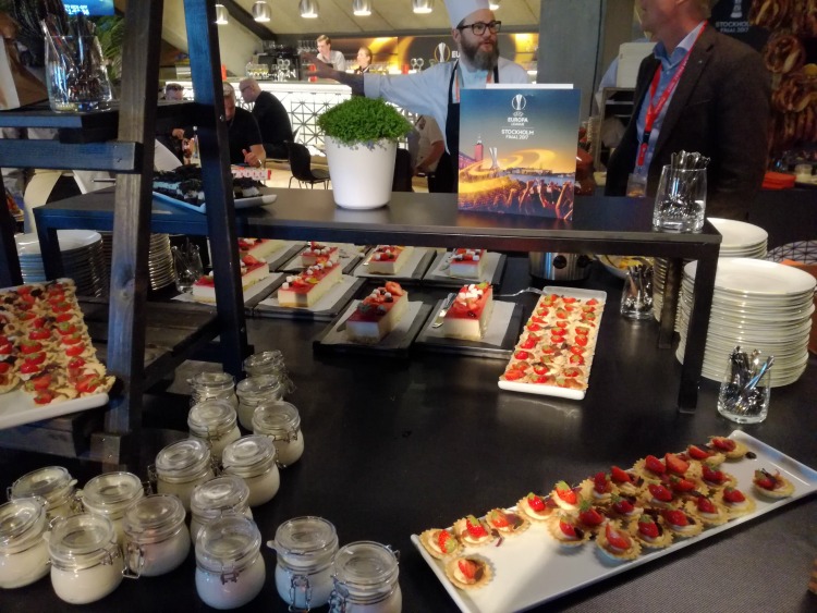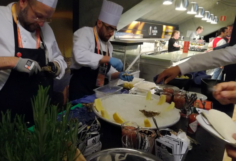 Οταν τελικά διαβήκαμε το κατώφλι του Europa lounge, μείναμε με το στόμα ανοιχτό. Ηταν ο χώρος για τους καλεσμένους των χορηγών του Europa League, μέσα στις εξέδρες του γηπέδου. Ενας χώρος που μόνο γήπεδο δεν θύμιζε και είχε πάντα! Οσα φαγητά και ποτά μπορεί να ζητήσει κάποιος, απλώς τα είχε...