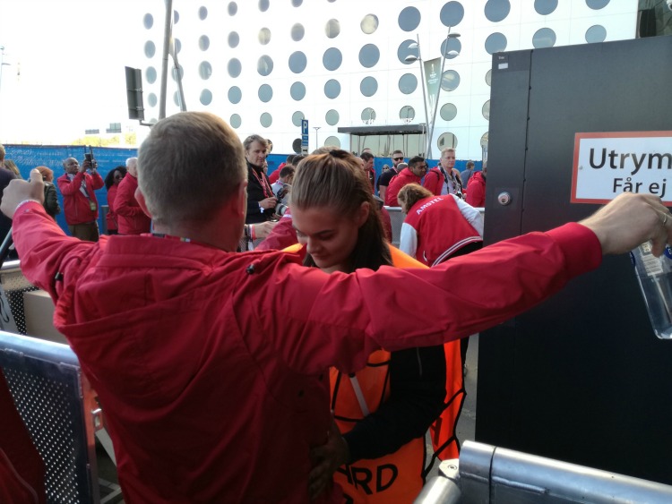 Με φύλακα - άγγελο το Μάνο Ιατρέλη από την Αθηναϊκή Ζυθοποιϊα που μας έκανε όλα τα χατίρια, κατευθυνθήκαμε στην είσοδο του χώρου που θα περνούσαμε τις επόμενες ώρες για να περάσουμε από σωματικό έλεγχο. Μόνο που τον έκανε μία πανέμορφη Σουηδέζα με όλους τους άνδρες της παρέας να χαμογελούν πονηρά!
